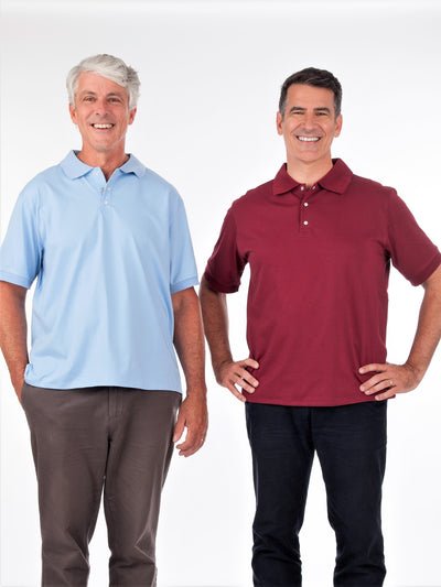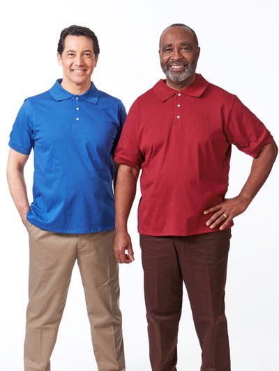 We’ve taken a classic short sleeve polo and made it adaptive with back snaps!