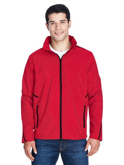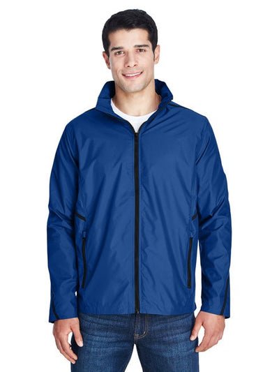 This stylish jacket has a nylon shell with a polyurethane coating for enhanced water and wind resistance.  It has lower front zip pockets and a roll-away hood. Nylon shell with a polyester mesh lining