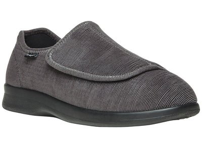 This smart looking slip-on features a Corduroy and neoprene upper with extra large strap closure for easy entry that provides a little extra give– just where it’s needed. The double insoles provide twice the cushioning and can be removed to create additional room or to accommodate custom orthotics.