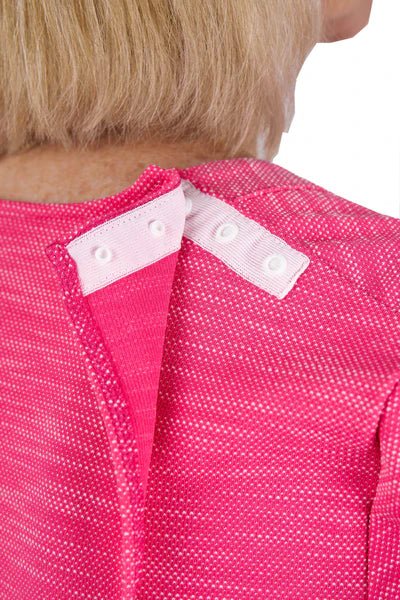 This fashionable adaptive top is specifically designed for easy slip-on dressing. A great choice for disabled adults, nursing homes, home care or hospitals.  Full open back top with snap closures make dressing a breeze for both the individual being dressed and the caregiver assisting in the dressing.