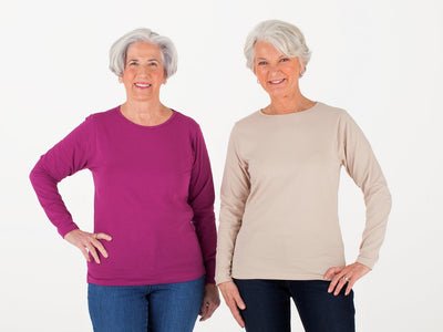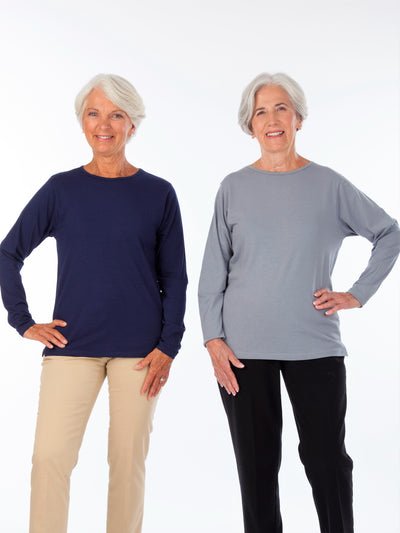 We love these curvy long sleeve tees!  They feature a gentle cut to ensure proper slim fit.  Ultra soft fabric is durable yet gentle on the skin and a slight stretch ensures full range of motion.