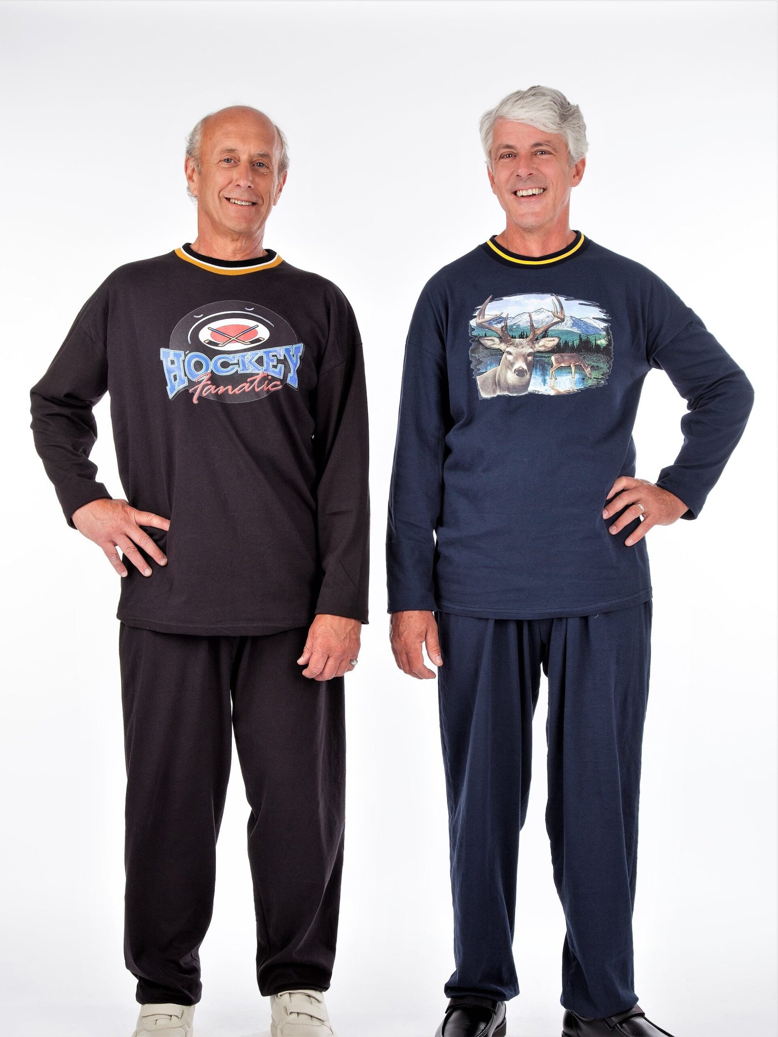 This outfit is a wonderful compromise between warmth and breathability. Elastic waist pants and coordinating long-sleeve top provide just the right amount of coverage. Assorted Colors & Screen Prints Poly/Cotton Knit