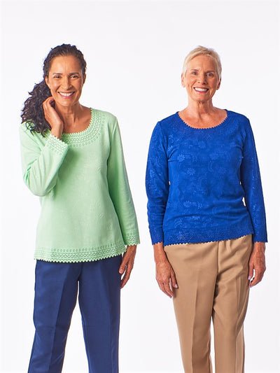 We now offer our wildly popular short sleeve Laser Tops in long sleeve! They are available in an assortment colors and feature a gentle curve to their cut, ensuring a flattering, yet comfortable fit. Dress them up or wear them casually – we love these new tops!