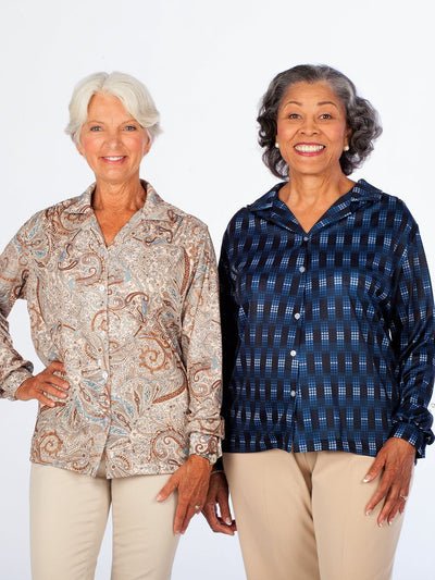 This popular long sleeve button blouse is silky to the touch, lightweight, and wrinkle resistant! Assorted Colors & Prints 100% Polyester