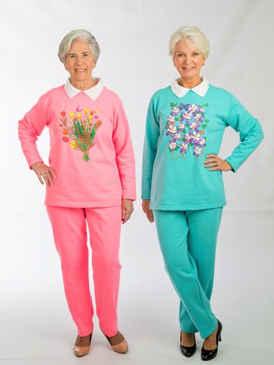 Our super-soft fleece sweatsuit is now available with a screen print and collar! Mux up your wardrobe with a few different colors and prints- you’ll want to wear these all the time! Assorted Colors & Screen Prints Poly/Cotton Fleece
