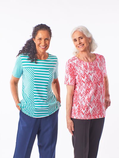 Assorted printed tees make wonderful additions to a spring or summer wardrobe. A wide array of colors and patterns ensures variety!