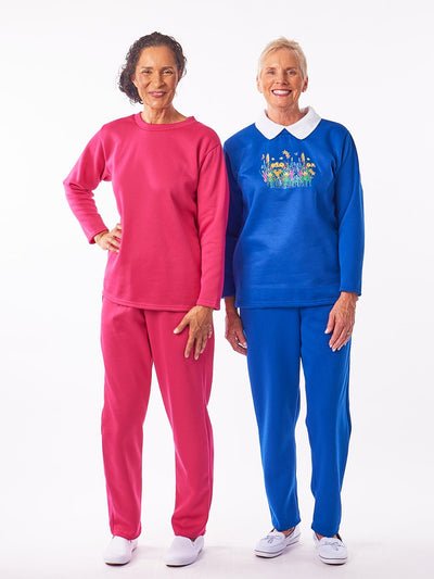 You won’t find a more comfortable adaptive fleece outfit! Easy to use back snaps and side zip pants simplify dressing and undressing.